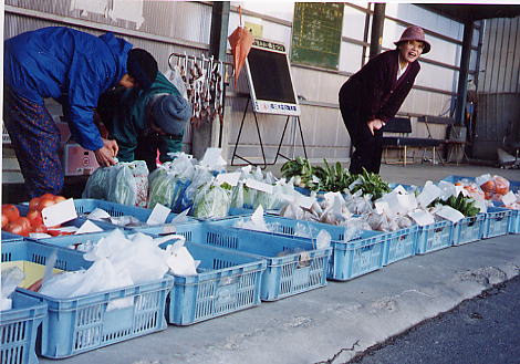 主な取り扱い品 ・・・ ゴボウ、ダイコン、ニンジン、ワラビ、タマネギ、ジヤガイモ、ナス、ミカン、スダチ、カキ、サツマイモ、ホウレンソウ、漬物類など
