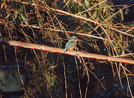 カワセミ ( 留鳥または漂鳥 ) 用水路や川の付近でよく見かける。すばしこくて、人を見つけるや低空飛行で飛び去る。目の前を1直線に飛んでいくのを見るのも感動的である。 |