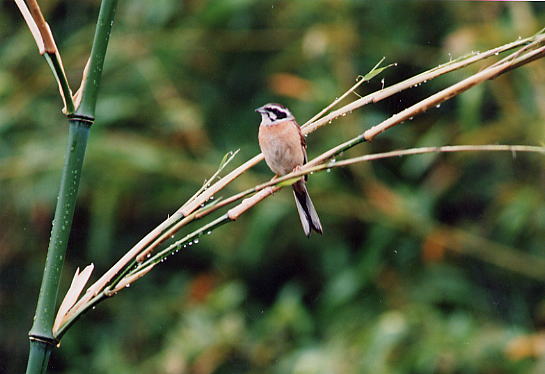 | ホオジロ ( 留鳥 ) スズメと少し似ているが、もっときれいだ。藪の中にさっと隠れることも多いが、鳴いている時は木のてっぺんなどにいてわかりやすい。声もきれい。 |