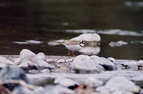 | コチドリ ( 夏鳥 ) 川原で偶然見つけた。目のまわりの黄色のリングがかわいい。すばやい動きでとっとと歩く。ピューピューとかぼそい声でなく。田んぼにもいた。 |